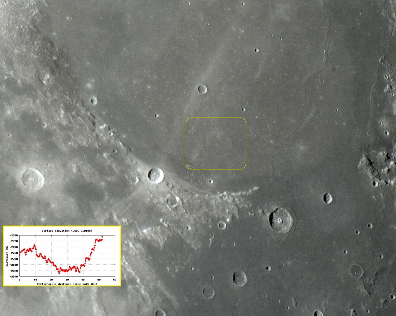Foto: A cratera fantasma LAMONT, catalogada pela IAU, com seu perfil altimétrico. Foto executada com apenas 1 frame pelo VTOL.