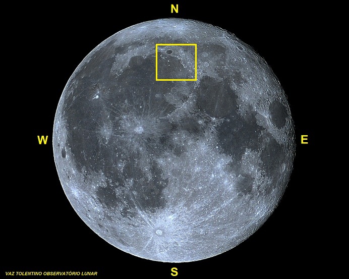 Coordenadas Selenográficas: LAT: 47.5° N, LON: 08.0° W;