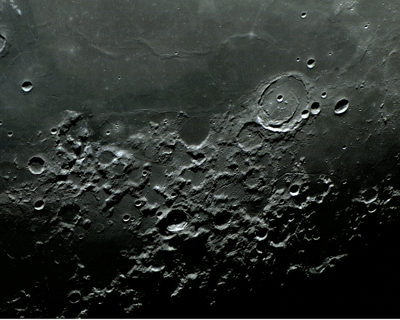 Esta magnífica cratera circular, conhecida como POSIDONIUS, é considerada um dos mais belos alvos para telescópios existentes no quadrante nordeste. POSIDONIUS é uma bela cratera com piso fraturado, apresentando fendas, sulcos, canais e outros detalhes em sua superfície interna.