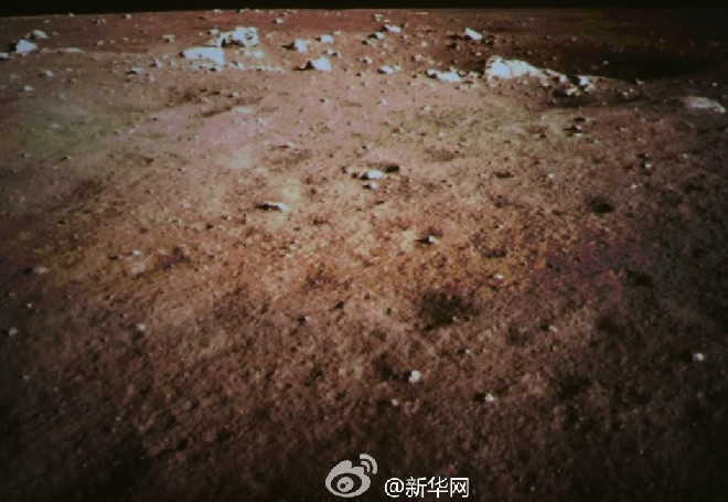 Foto: vista da superfície lunar próxima ao local de alunissagem da sonda chinesa Chang'e 3.