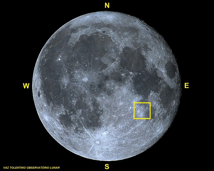 Coordenadas Selenográficas: LAT: 11° 24′ 00″ S, LON: 26° 24′ 00″ E.
