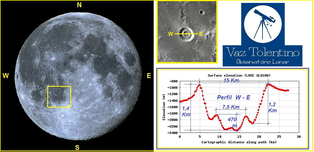 Coordenadas Selenográficas: LAT: 30.13o E, LON: 17.09o W;