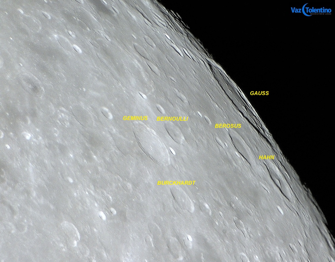 Dois dias após a Lua nova ou 1 dia após a Lua cheia são os melhores períodos para observação de GAUSS. O nome dessa grande cratera homenageia Carl Friedrich Gauss (1777 - 1855), que foi um matemático e astrônomo alemão.
