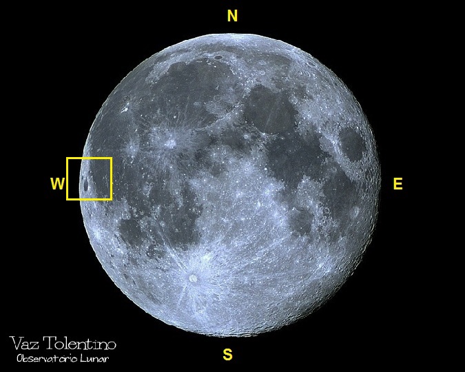 Foto abaixo: A memória do selenógrafo Wilhelm Gotthelf LOHRMANN (1796 – 1840) foi registrada na Lua, através da cratera LOHRMANN (diâmetro: 31 Km, profundidade: 1,7 Km; LAT: 00° 30′ 00″ S e LON: 67° 12′ 00″ W), posicionada entre as crateras GRIMALDI e HEVELIUS, junto ao limbo lunar oeste.