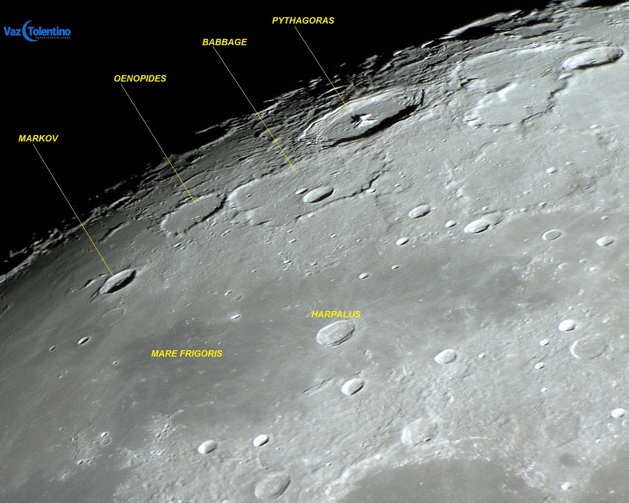 Pythagoras é uma destacada cratera de impacto localizada próxima ao limbo noroeste da Lua, apresentando 130 Km de diâmetro e 5 Km de profundidade. Do lado sudoeste de Pitágoras e junto à sua parede, encontra-se a cratera Babbage ( LAT: 59o 42' 00" N, LON: 57o 06' 00" W).