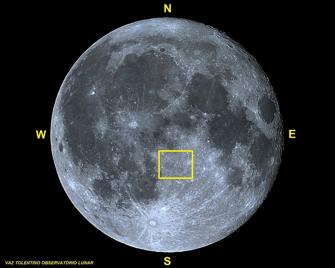 Coordenadas Selenográficas: Lat: 11° 12′ 00″ S, Lon: 04° 06′ 00″ E;