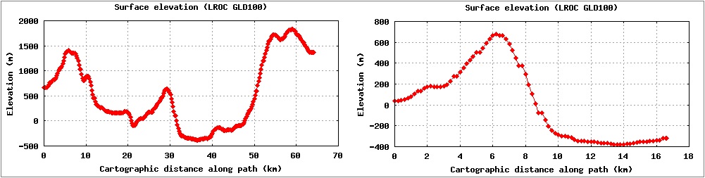 Ilustração: O perfil Norte - Sul da cratera ZÖLLNER e o perfil Norte - Sul do pico central dessa cratera, mostrando que o pico se eleva por cerca de 1,06 Km em relação ao ponto mais baixo do fundo da cratera.