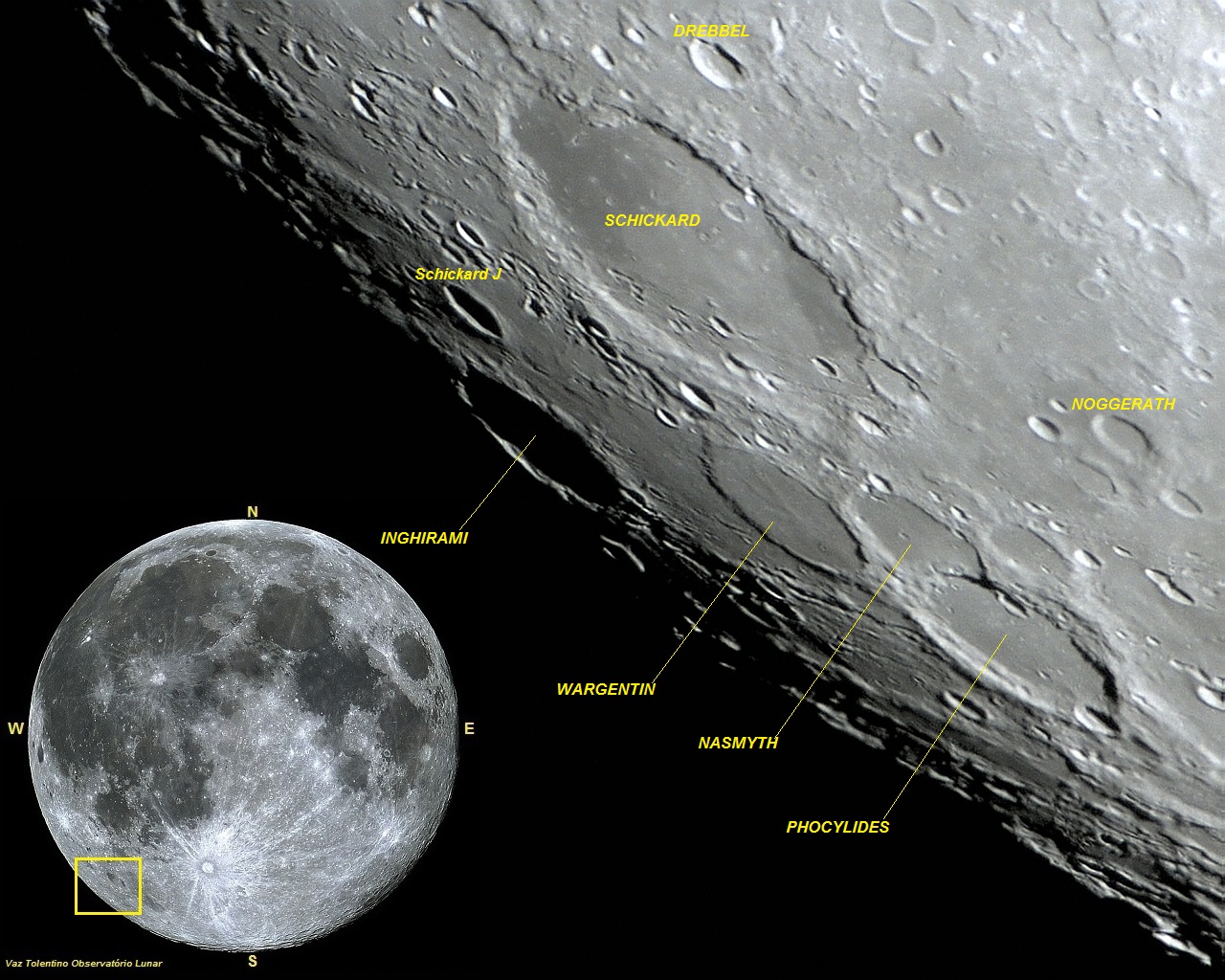 Coordenadas Selenográficas: LAT: 49° 36′ 00″ S, LON: 60° 12′ 00″ W;