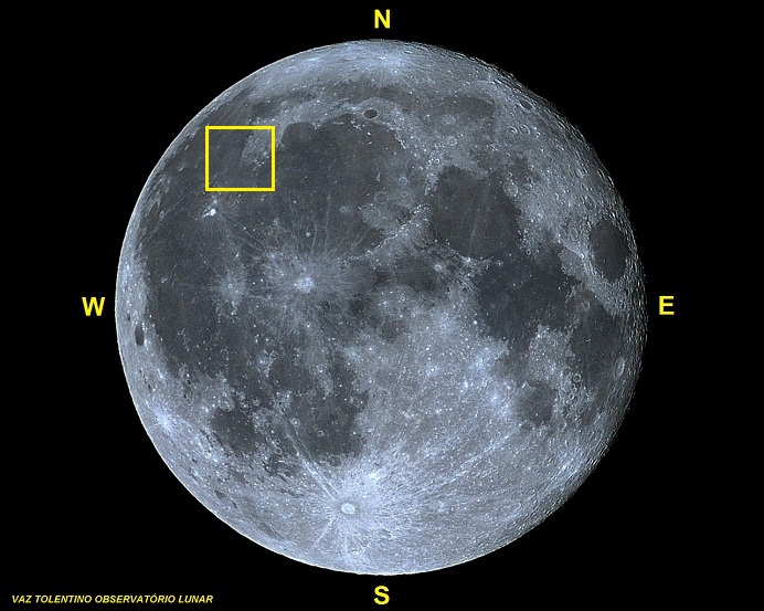 Coordenadas selenográficas: LAT: 40° 48′ 00″ N, LON: 58° 06′ 00″ W;