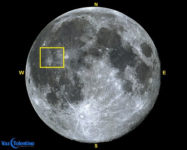 Coordenadas Selenográficas: LAT: 10o 05' N, LON: 31o 12' W;