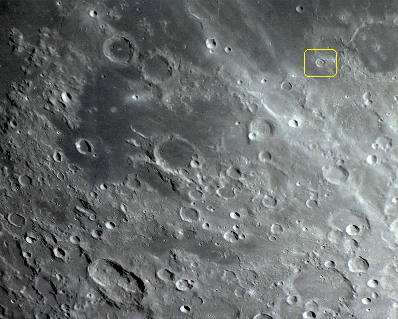 Coordenadas Selenográficas: LAT: 30.13o E, LON: 17.09o W;