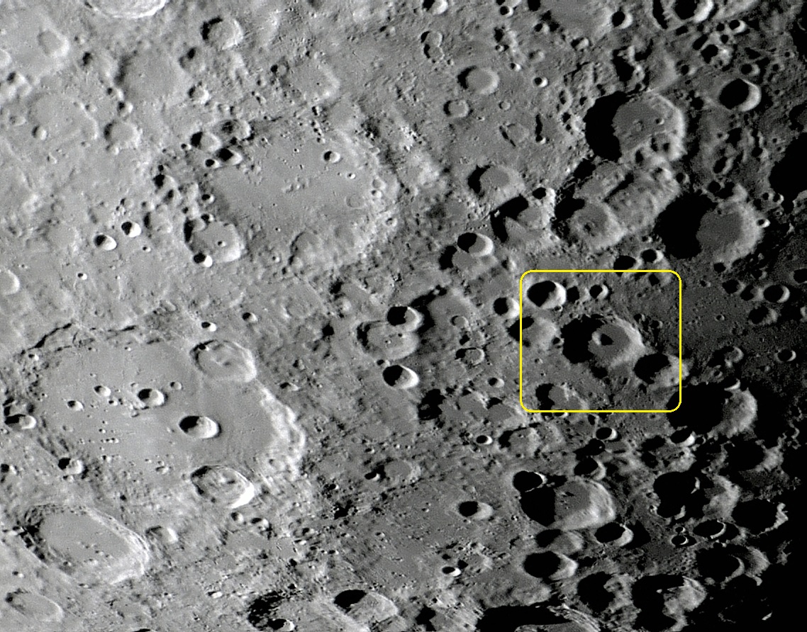 Coordenadas Selenográficas: LAT: 54° 30′ 00″ S, LON: 06° 12′ 00″ E;