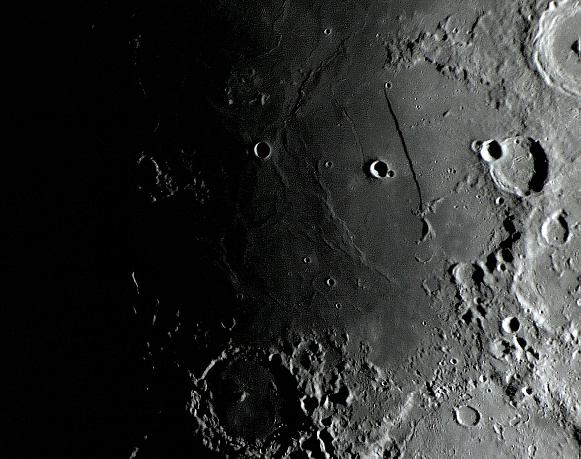 Esta interessante formação vem à luz do dia logo após o quarto crescente e aparece como uma fina linha preta quando iluminada a partir do leste (manhã local) e uma fina linha brilhante, quando iluminado a partir do oeste (tarde local).