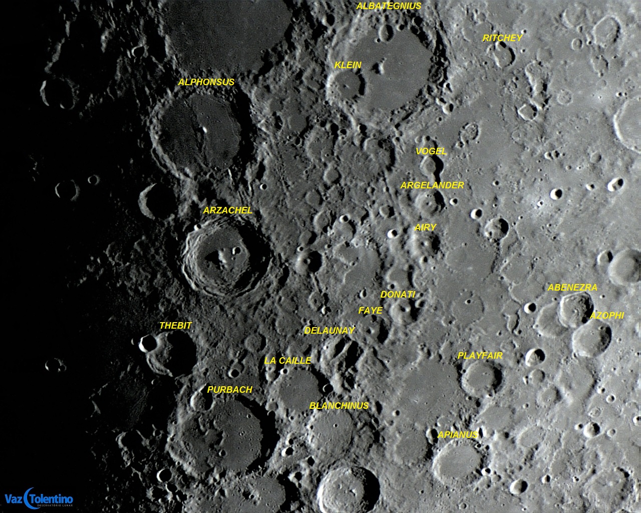 A cratera ARZACHEL possui uma grande e massiva montanha central, com cerca de 2 Km de altitude em relação ao piso interno.