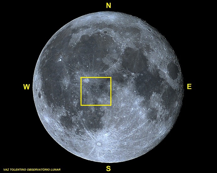 Coordenadas Selenográficas: LAT: 01° 24′ 00″ S, LON: 13° 12′ 00″ W;