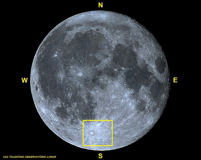 Coordenadas Selenográficas: LAT: 34.8° S, LON: 3.8° E.