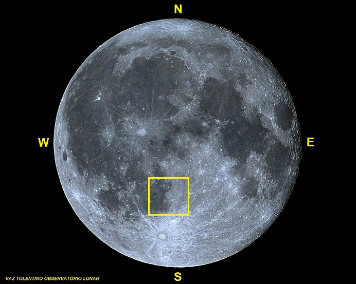 Coordenadas Selenográficas: Lat: 22.1º S Lon: 7.8º W.