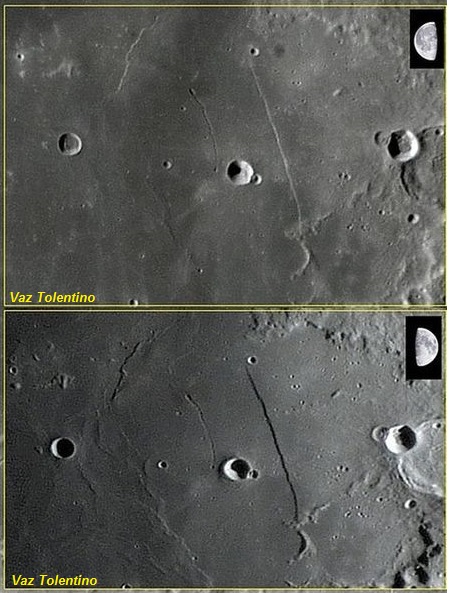 Esta interessante formação vem à luz do dia logo após o quarto crescente e aparece como uma fina linha preta quando iluminada a partir do leste (manhã local) e uma fina linha brilhante, quando iluminado a partir do oeste (tarde local).