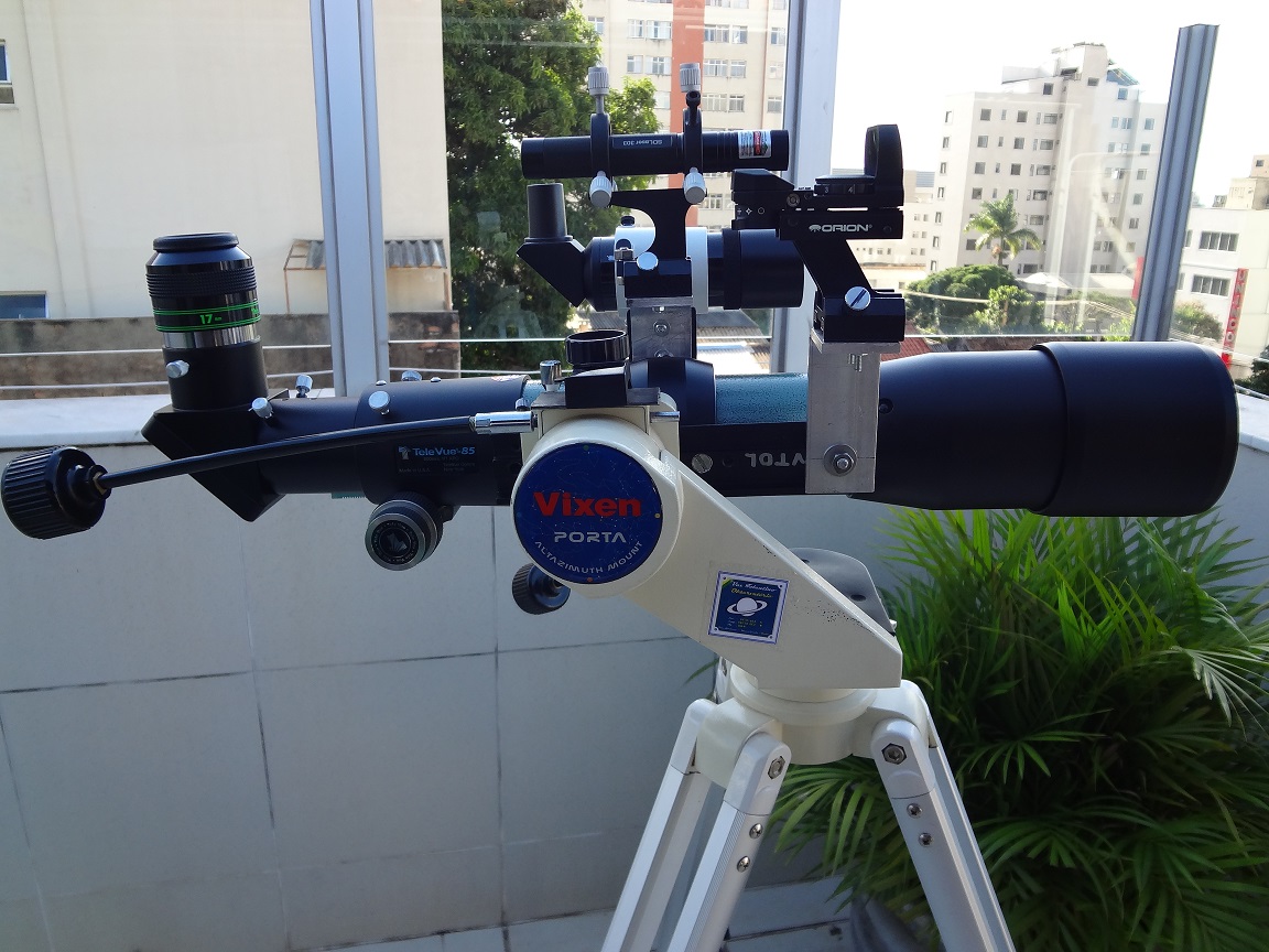 A montagem Alt-Azimutal VIXEN Porta, devido à sua simplicidade, maciez nos movimentos e leveza, foi a escolhida para ser utilizada com o TV-85 nas observações tanto de dia quanto de noite. Excelente montagem, confiável, precisa e sem folgas.