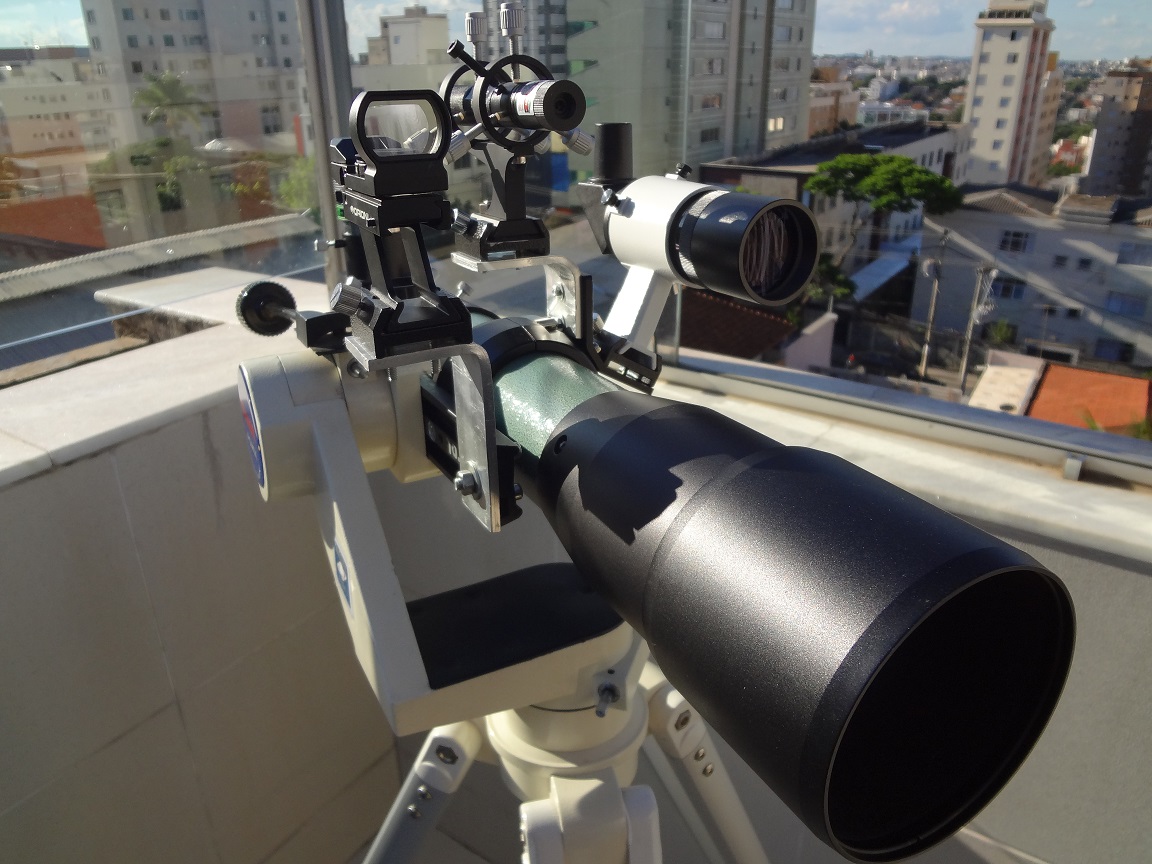 As 3 miras instaladas foram as seguintes: mira óptica SKY-WATCHER 8X50mm com visão corrigida e retículo, uma mira red dot ORION EZ com diferentes intensidades de luminosidade e um laser verde de grande potencia. Isso nos fornece opções. O conjunto de miras proporciona versatilidade para observações de paisagens diurnas e nas observações astronômicas noturnas. As 3 miras podem ser utilizadas durante a noite, enquanto que as miras óptica e a red dot, podem ser utilizadas de dia.