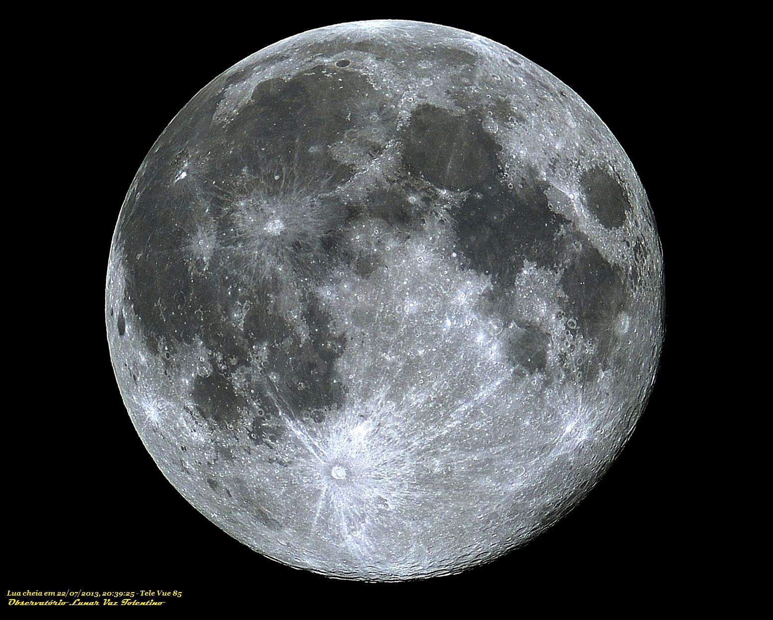 Foto: Lua cheia em 22/07/2013, 20:39:25, fotografada com apenas 1 frame, através do telescópio Tele Vue 85.