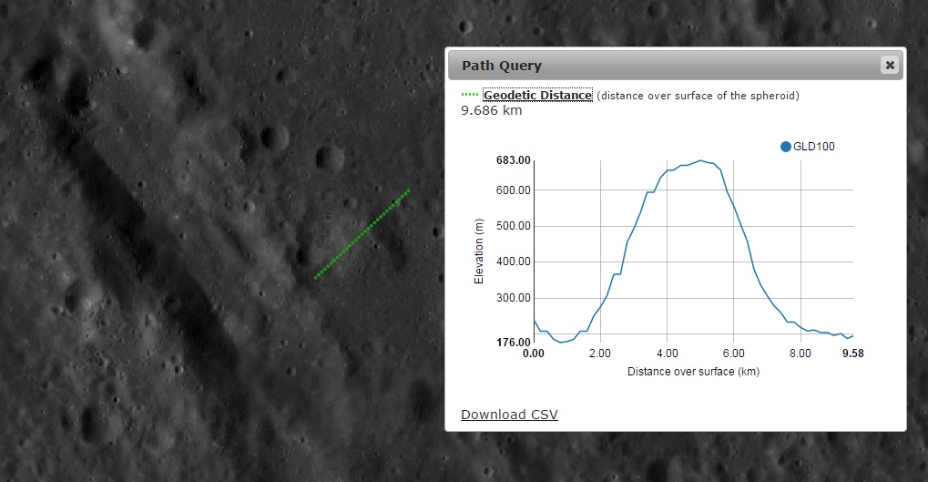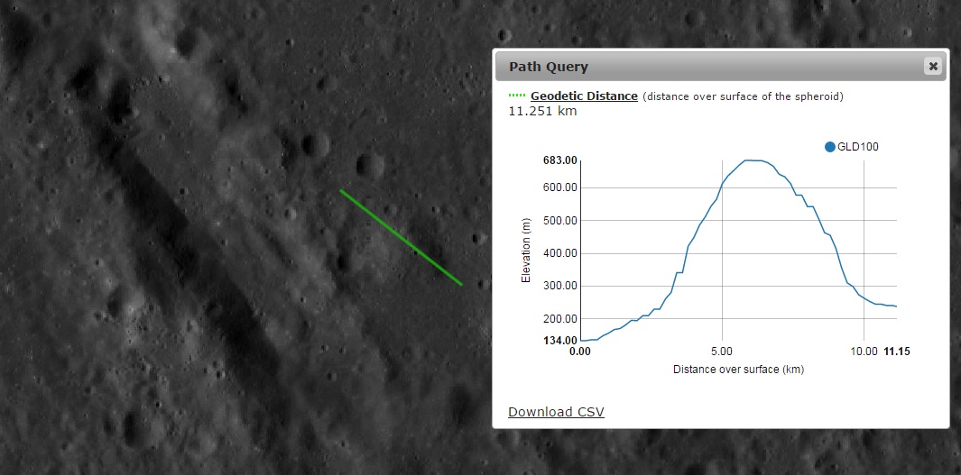 Imagem: O perfil longitudinal do Domo Vulcânico Gyldén 1 - LRO QuickMap.