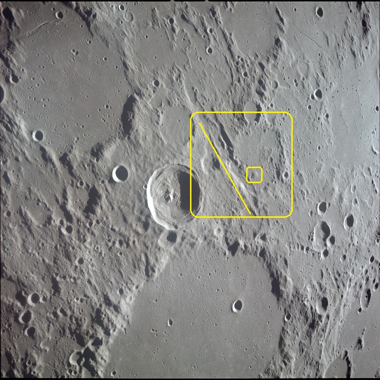 ImagemVallis GYLDÉN e Domo vulcânico Gyldén 1 fotografados em voo orbital por uma das missões APOLLO.