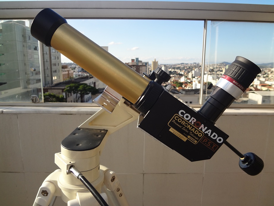 Foto executada com apenas 1 frame via Coronado PST (filtro H-Alpha) em 06 de maio de 2016, 14:33:35.