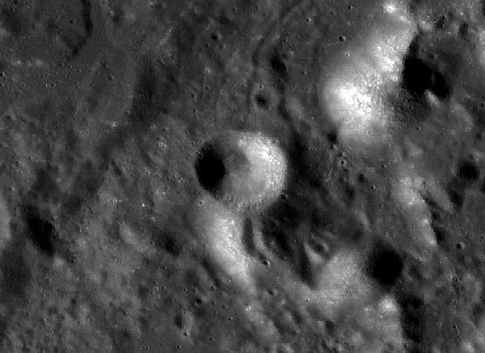 Imagem: A cratera SANTOS-DUMONT fotografada pela sonda lunar americana LRO da NASA.
