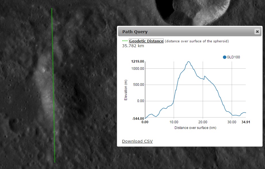 Imagem (Norte para direita): O perfil altimétrico N - S do referido monte isolado - LRO QuickMap.