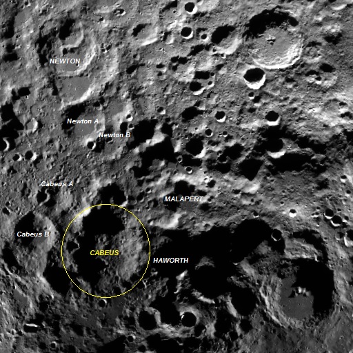 Localização: Cabeus está posicionada numa distância de aproximadamente 100 km do polo sul lunar.