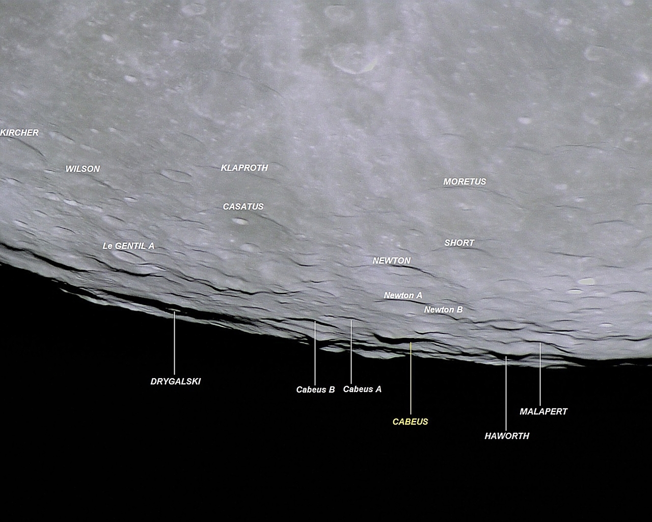 Cratera CABEUS: (foto executada em 22 de abril de 2016, 01:27:43 (04:27:43 UT)).