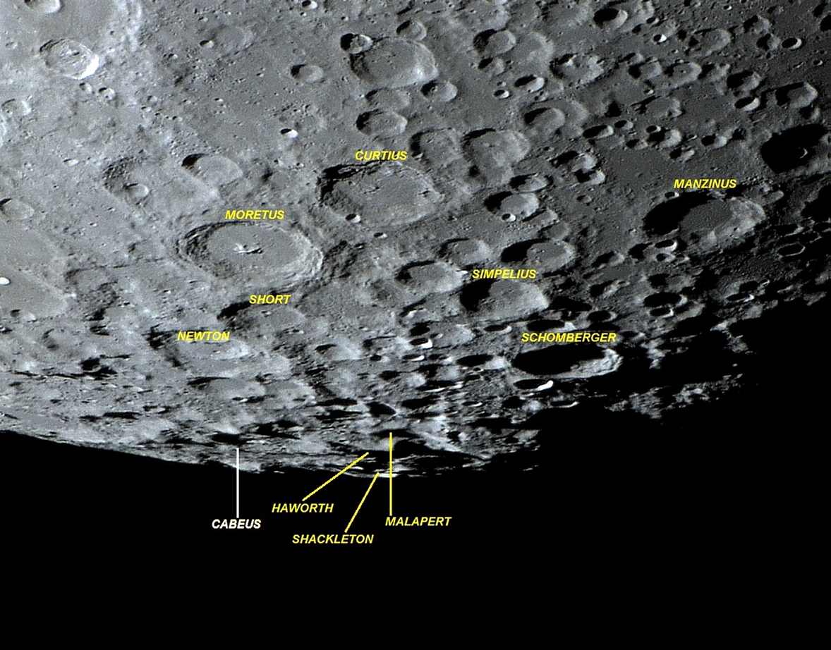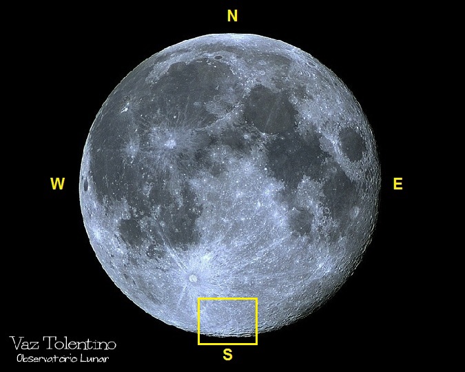 Coordenadas selenográficas: LAT: 85.28° S e LON: 41.81° W.