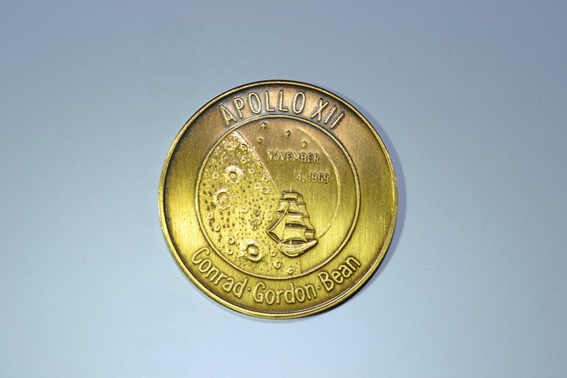 Imagem: Medalha oficial em bronze comemorativa da missão Apollo XII - foto: VTOL.