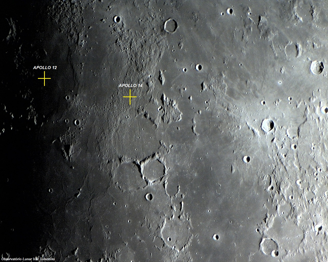 Os locais de alunissagem das missões APOLLO 12 e 14.