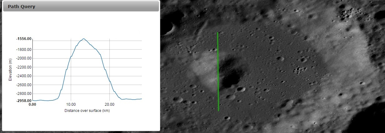 Imagem: Perfil altimétrico W - E da Cratera LILIUS - LRO QuickMap / NASA.