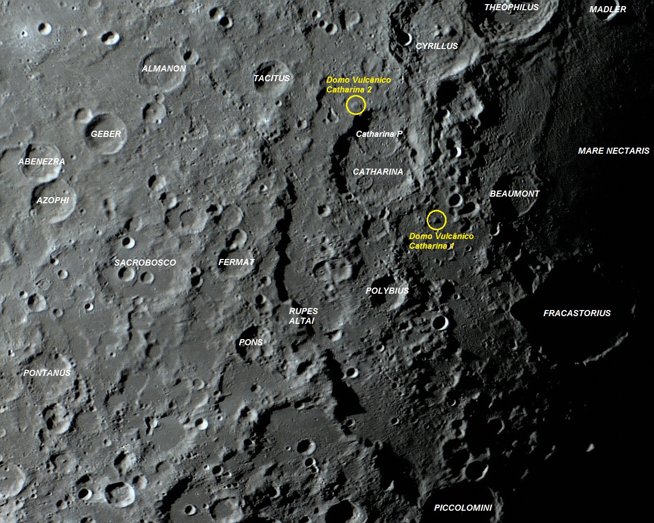 Foto: O domo vulcânico de Terras Altas “Catharina 1”, localizado junto à cratera CATHARINA, de onde recebeu seu nome. Foto executada com apenas 1 frame em 22 de fevereiro de 2011, 02:34:22.