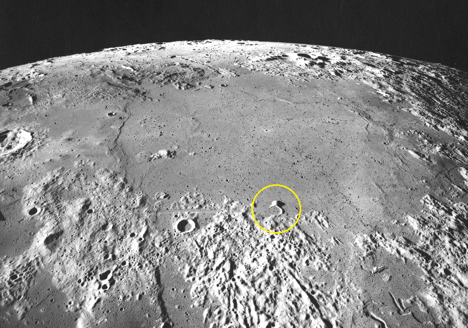Imagem: O pequeno monte hemisférico fotografado em voo orbital pela sonda lunar robótica LRO da NASA.