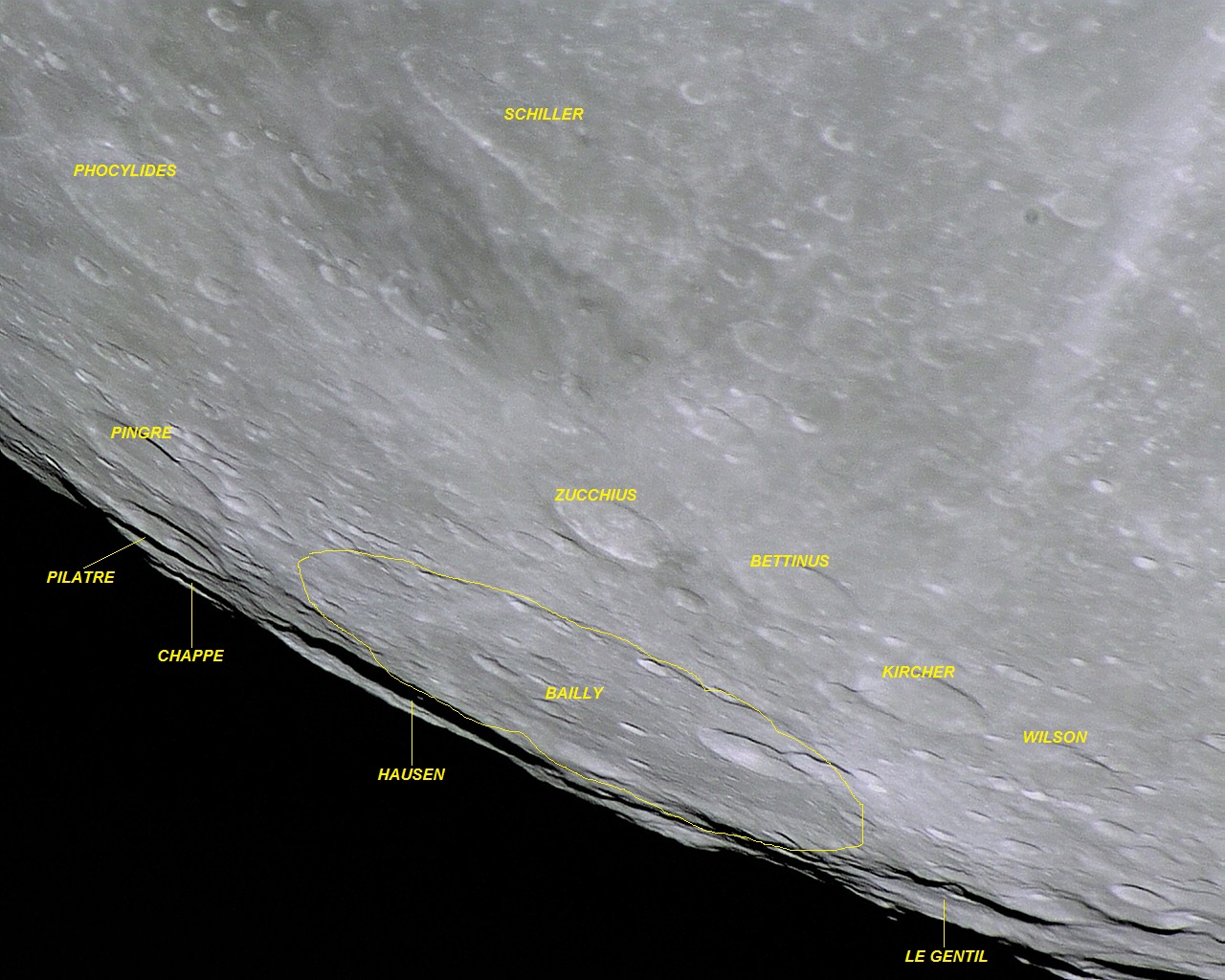 Próximo de HAUSEN, do seu lado leste, está localizada a enorme cratera BAILLY, com seus 300 Km de diâmetro e 4,13 Km de profundidade. BAILLY é considerada a maior cratera de impacto do hemisfério visível da Lua.