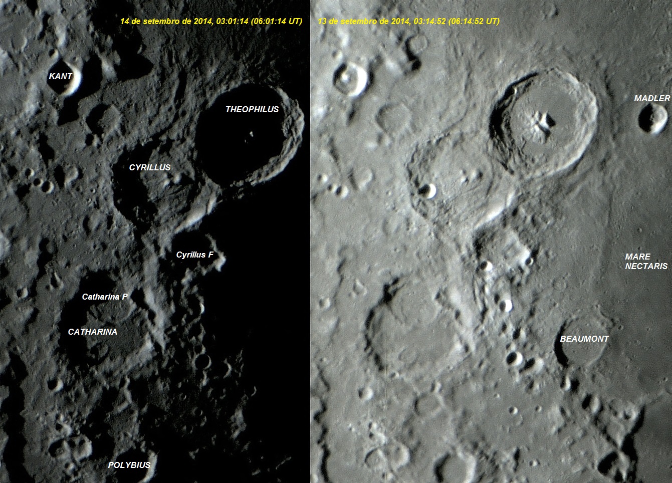 Fotos executadas com apenas 1 frame em 14 de setembro de 2014, 03:01:14 (06:01:14 UT) e 13 de setembro de 2014, 03:14:52 (06:14:52 UT).