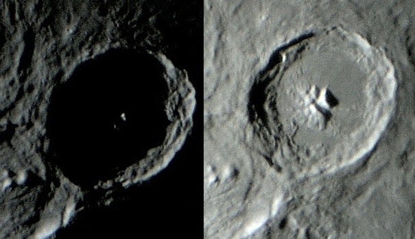 O anoitecer na cratera THEOPHILUS, com aproximadamente 24h de diferença uma foto da outra: