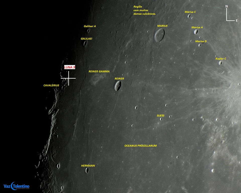 Pela primeira vez, a Lua é observada ao nível da superfície. A área fotografada está a oeste das crateras de Reiner e Marius no Oceano das Tormentas (Oceanus Procellarum).